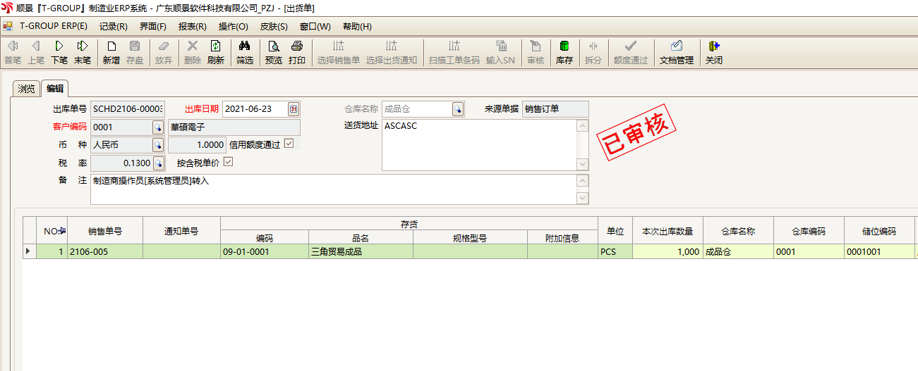 14.此时A公司的库内:也会生成一张出货单,为步骤1内(下单客户)的销售订单的出货单。