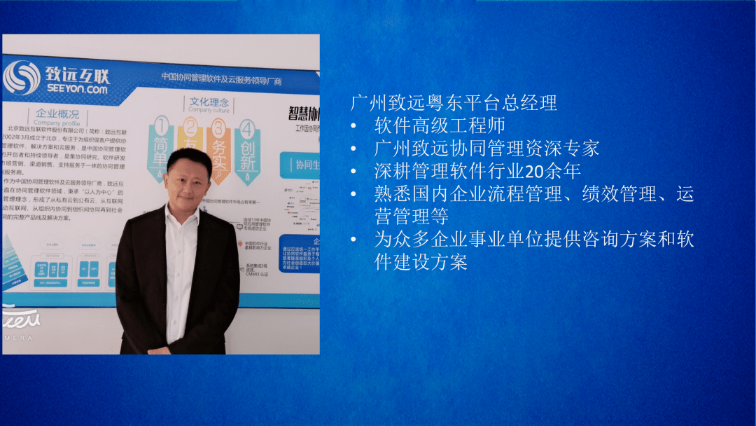 广州致远粤东平台总经理陈越作为办公协同解决方案提供方,从企业数字化各系统间的关系、功能、数字化实施逻辑等对企业的数字工厂建设提出了合理的建议。